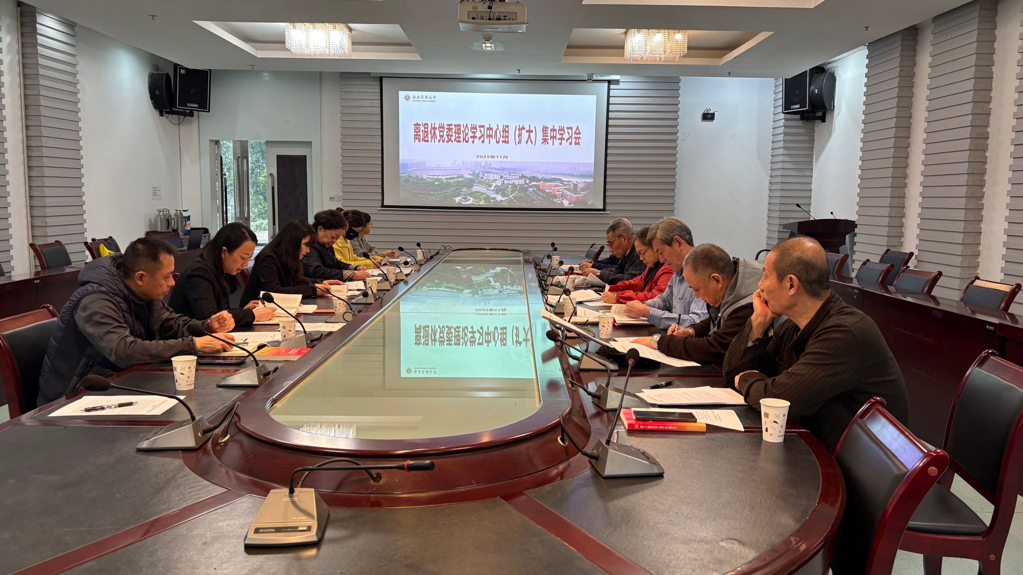 11月12日,离退休党委在城北校区三会议室召开理论学习中心组(扩大)集中学习会,各离退休党支部书记、部门在职人员参加学习。会议由离退休党委书记李建英主持。